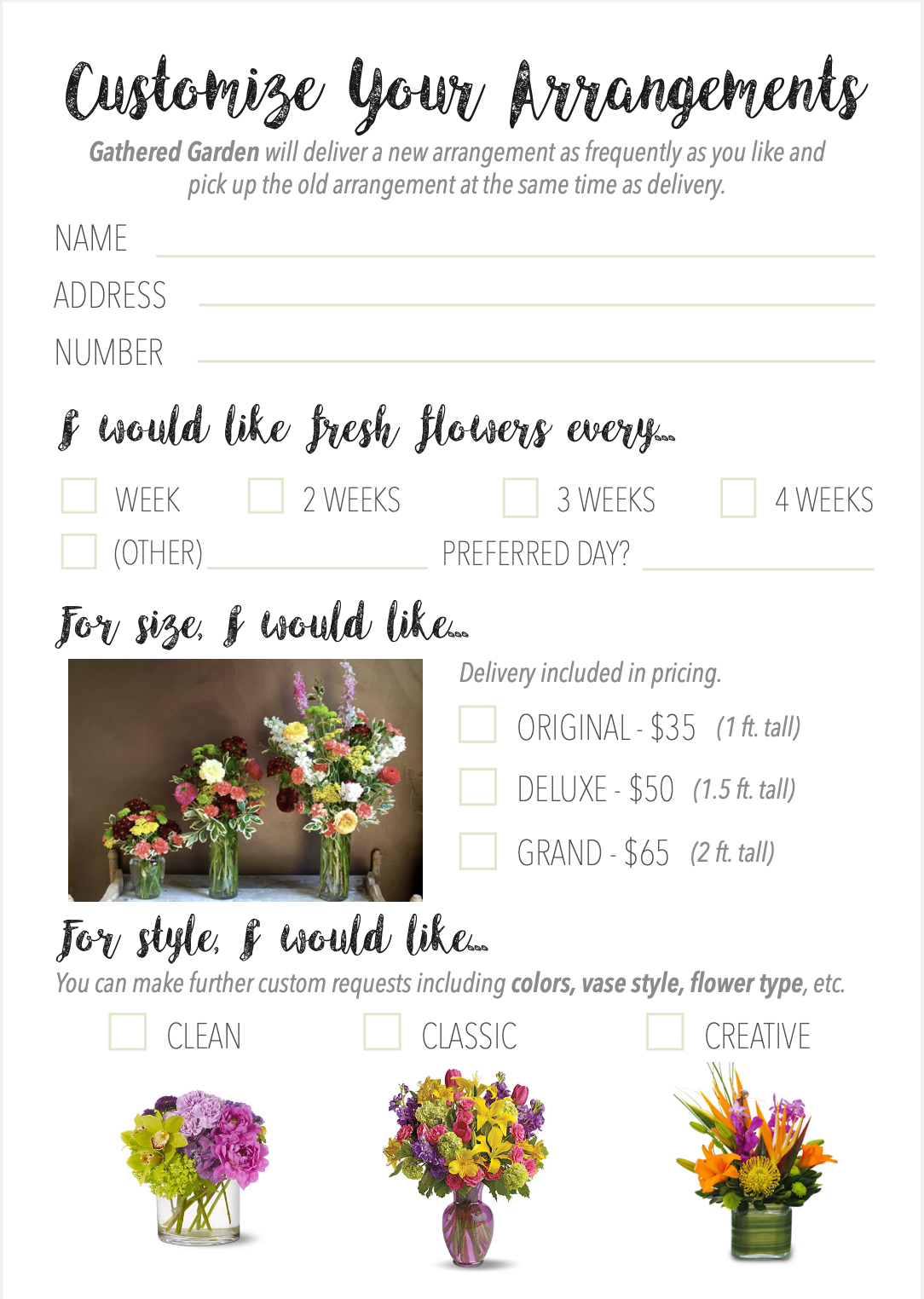 Gathered Garden is a sweet little startup that delivers custom flower arrangements. They desired some simple branding, business cards, and an order form to get their business up and running.